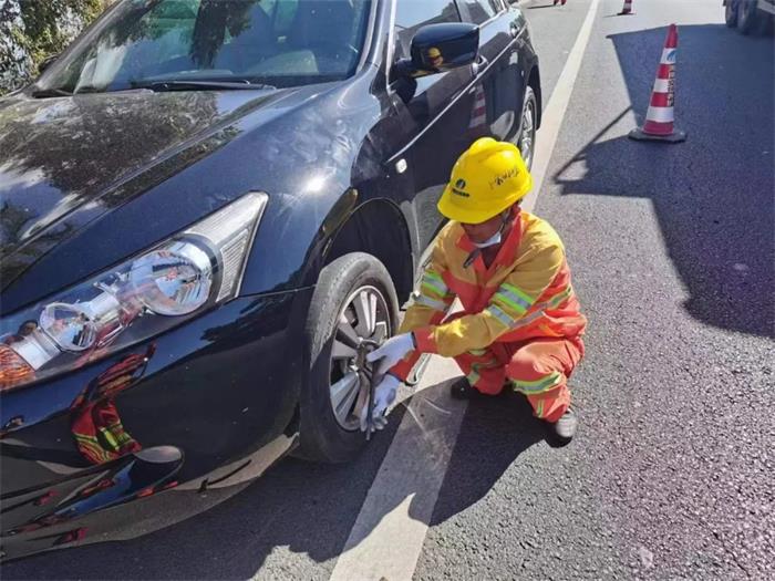 各管理站“车轮上党小组”成员帮助车主更换轮胎。