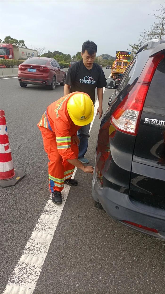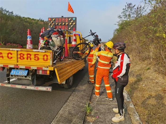 乐东站“车轮上党小组”林焕吉帮忙护送误入高速公路骑行者。