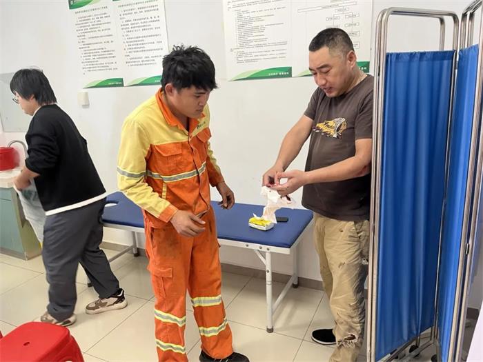 崖城站“车轮上党小组”陈明宝、吴开炀送受伤车主前往医院治疗。