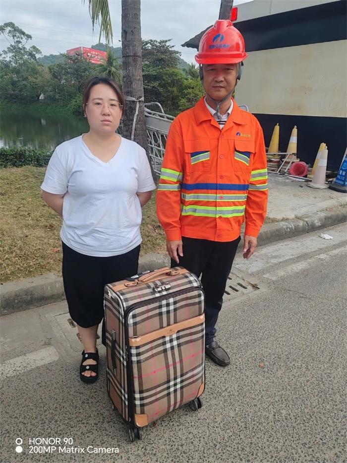陵水站“车轮上党小组”韦林芳帮助车主找到遗失行李箱。