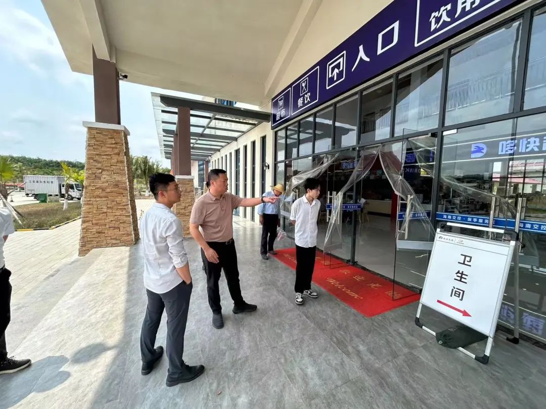 交商集团执行董事王翼带队前往冯家湾、保亭、琼中、枫木、屯昌等高速公路服务区,重点检查了服务区内的综合能源补给站、消防设施、安全通道、食品卫生、电气设备以及应急物资等方面的情况,并向服务区现场工作人员了解日常经营情况。