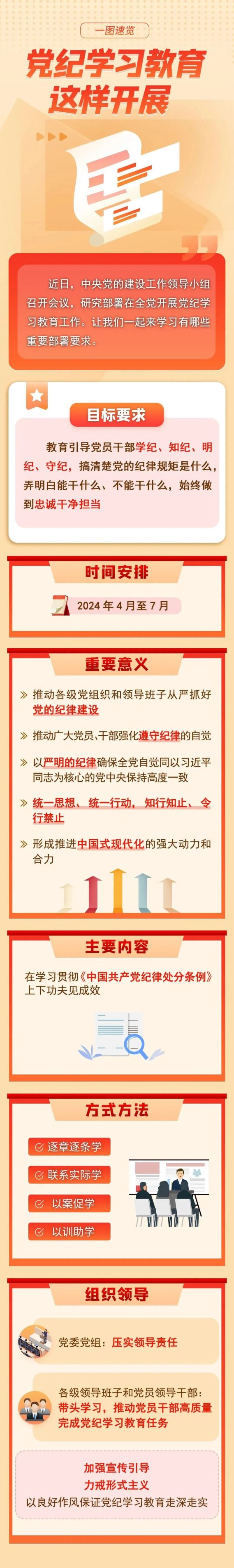 《通知》要求,各级党委(党组)要把开展党纪学习教育作为重要政治任务,精心组织实施,加强督促落实。要做好宣传引导工作,坚决反对形式主义,防止“低级红”、“高级黑”。