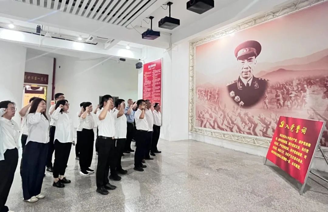 活动第一站来到琼海市周士第将军纪念馆,通过讲解员生动的讲解和浏览观看历史图片、资料和抗战文物等,大家深入了解周士第将军学生年代、大革命时期、土地革命战争时期、抗日战争时期、解放战争时期、社会主义革命和建设时期的重要活动轨迹。透过周士第将军英勇顽强、不怕牺牲、甘于奉献的革命事迹、精神,深刻体会中国共产党从成立、发展到壮大的艰辛历程,加深对党发展历史的认识和理解。参观结束后,举行了新发展党员入党宣誓仪式,全体党员庄严重温入党誓词。