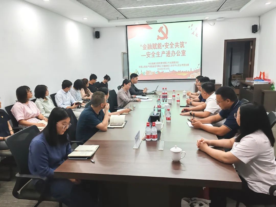 5月10日,海南交投投资公司党支部与国寿保险三沙市中心支公司党支部联合开展“金融赋能·安全共筑——安全生产进办公区”主题党日活动,旨在通过学习习近平总书记相关论述、授课讲座、协议共建等形式,将党的指导思想和安全生产知识有效结合,共同筑牢金融行业安全防线。此次活动由投资公司党支部组织委员王珊主持,投资公司党支部全体党员、发展对象及国寿保险三沙市中心支公司党支部党员共同参加。