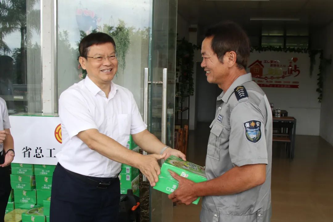 正值酷暑,烈日当头。为切实做好夏季户外劳动者防暑降温工作,维护广大一线职工的劳动安全和健康权益,7月18日,省总工会党组书记、常务副主席赖泳文,省总工会党组成员、副主席、经审委主任何清,省总工会法律保障部部长吴清新,省农林水利交通建设工会常务副主席张瑞琪,省交通运输工会常务副主席林育山一行赴海南交投屯昌服务区开展“送清凉”慰问活动,海南交投工会负责人及相关人员陪同。