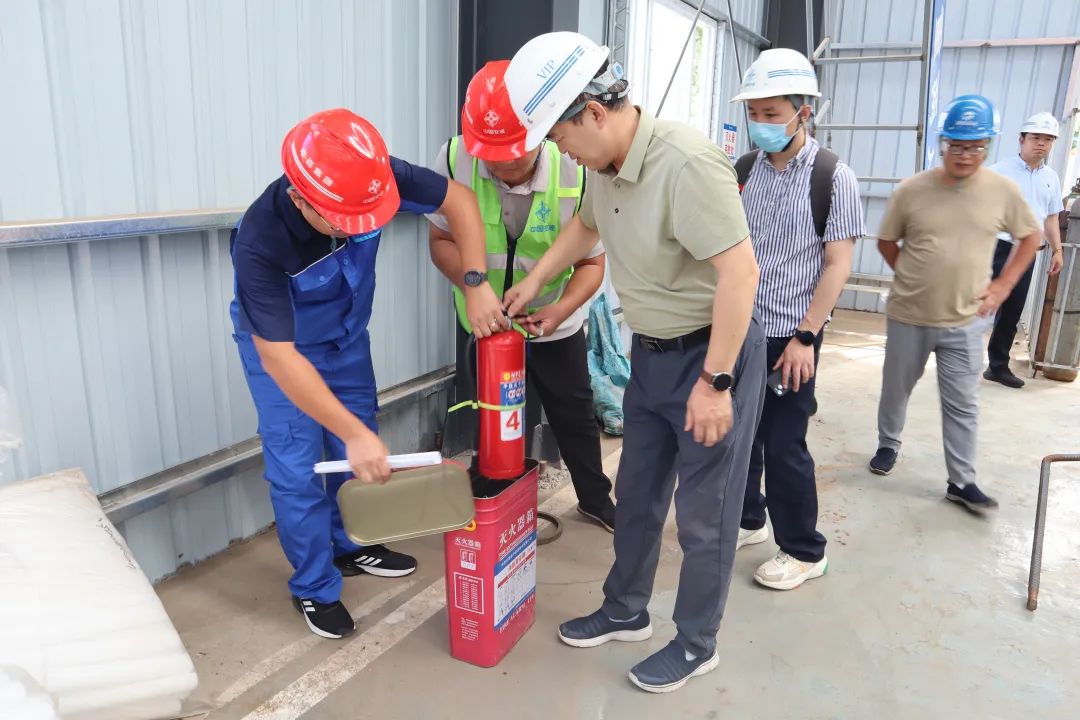督导组一行实地查看了施工现场的安全防护设施,包括临时围挡、安全警示标志的设置情况,重点检查了施工现场的排水系统是否畅通无阻,应急物资储备是否充足,包括沙袋、抽水机、灭火器、应急照明设备等。此外,督导组还检查了应急预案的编制、修订及备案情况,以及应急演练记录、气象灾害预警接收与响应机制等,确保项目部在面临自然灾害时能够迅速、准确地作出反应,保障人员安全,减少财产损失。