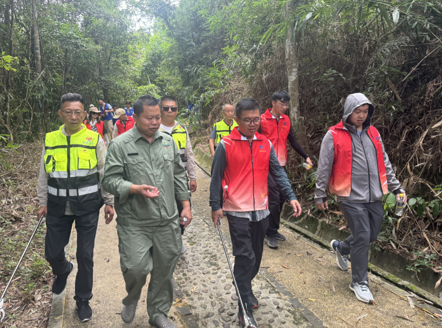 随后,全体人员跟随护林员徒步穿越林区,认识了海南苏铁、格木等国家重点保护植物,了解了黎母山的生态保护修复和生物多样性情况,并开展巡护检查、清扫垃圾等工作。