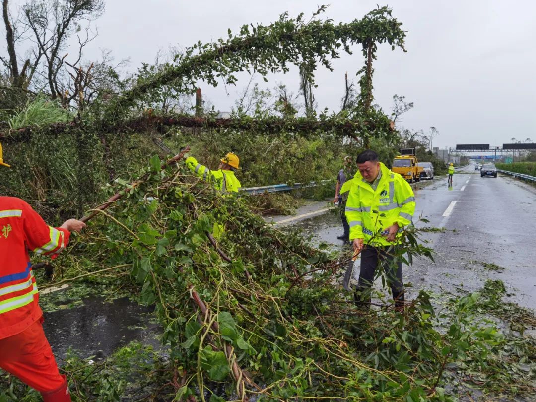 受超强台风“摩羯”影响,我省各高速公路树木倒伏,交安设施毁损,严重阻断交通出行,不少社会车辆滞留高速。养护公司在确认具备抢险条件后,立即组织各管理站连夜开展清障工作,争分夺秒实现通车目标。据不完全统计,在超强台风的肆虐下,养护公司管辖的高速公路倒伏树木数千棵,面对如此巨大的工作量和紧急的通行任务,养护公司在充分评估路面状况后,科学统筹公司各级抢险力量以及油锯、挖机、装载机等机械设备,按照“就近互助”原则,组织了100个小组共计469人次(含仙沟互通改造项目施工单位),对G98海南环岛高速龙桥至龙滚段以及G9811海三高速永兴至琼中段抢通保畅工作进行支援。截至目前,已出动大型机械设备57台,158车次,基本实现双向双车道畅通。