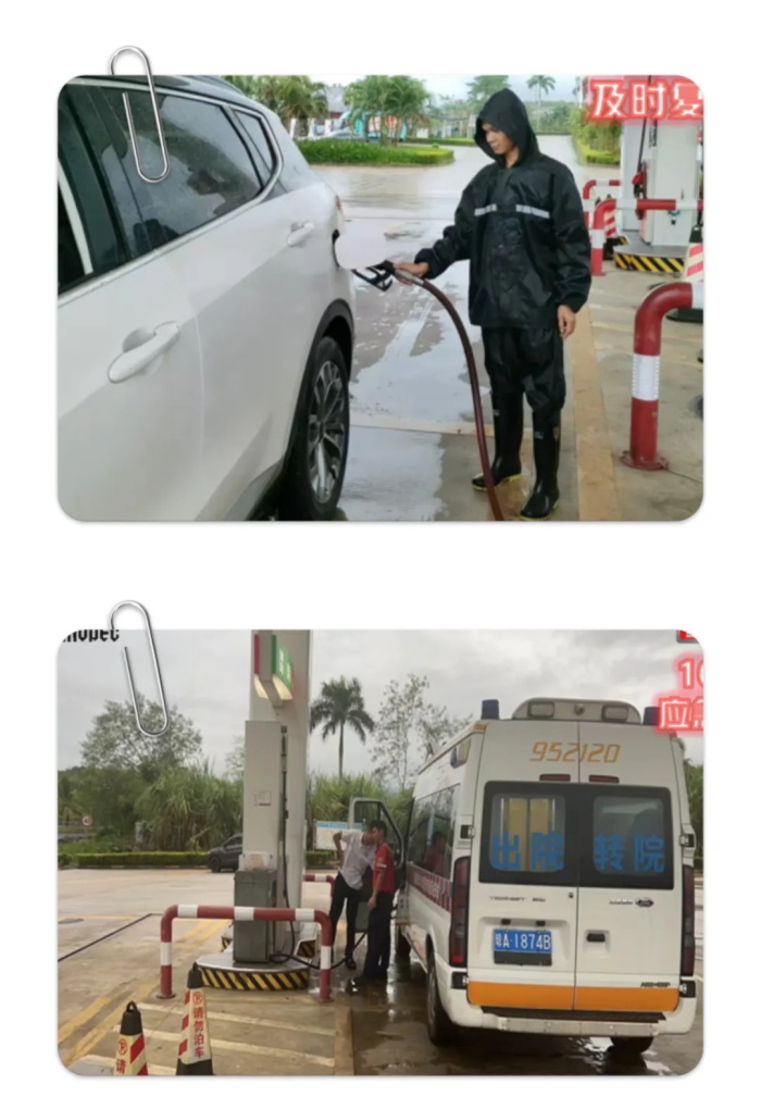 台风期间,4名外地旅客被迫滞留在冯家湾服务区,面对这一突发情况,服务区迅速响应,为滞留旅客提供了暖心服务保障,赢得了旅客声声赞誉,他们说:“在这样一个特殊的时期,服务区现场工作人员的热心帮助让我们感到十分温暖,他们的关怀让我们忘记了困境,体会到了海南浓浓的人情味”。此外,服务区加能站全体员工坚守岗位,开辟“绿色通道”,全力保障油品、商品24小时不断供,服务不打烊,充分发挥国有企业顶梁柱作用。各加能站累计保供应急抢险车辆、过往司乘车辆汽油约26000升、柴油约9000升。