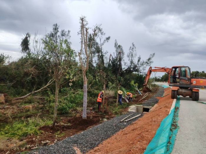 台风过后,海南交投旗下环岛旅游公路公司第一时间全力投入抢险救灾工作,组织参建、养护等单位,出动抢险保障人员325人次,挖掘机、运输车等设备63台,从严从细开展道路清障保通、设施设备检修、倒伏树木扶正、灾后消杀、复工安全生产条件核查、灾情统计等复工复产工作。