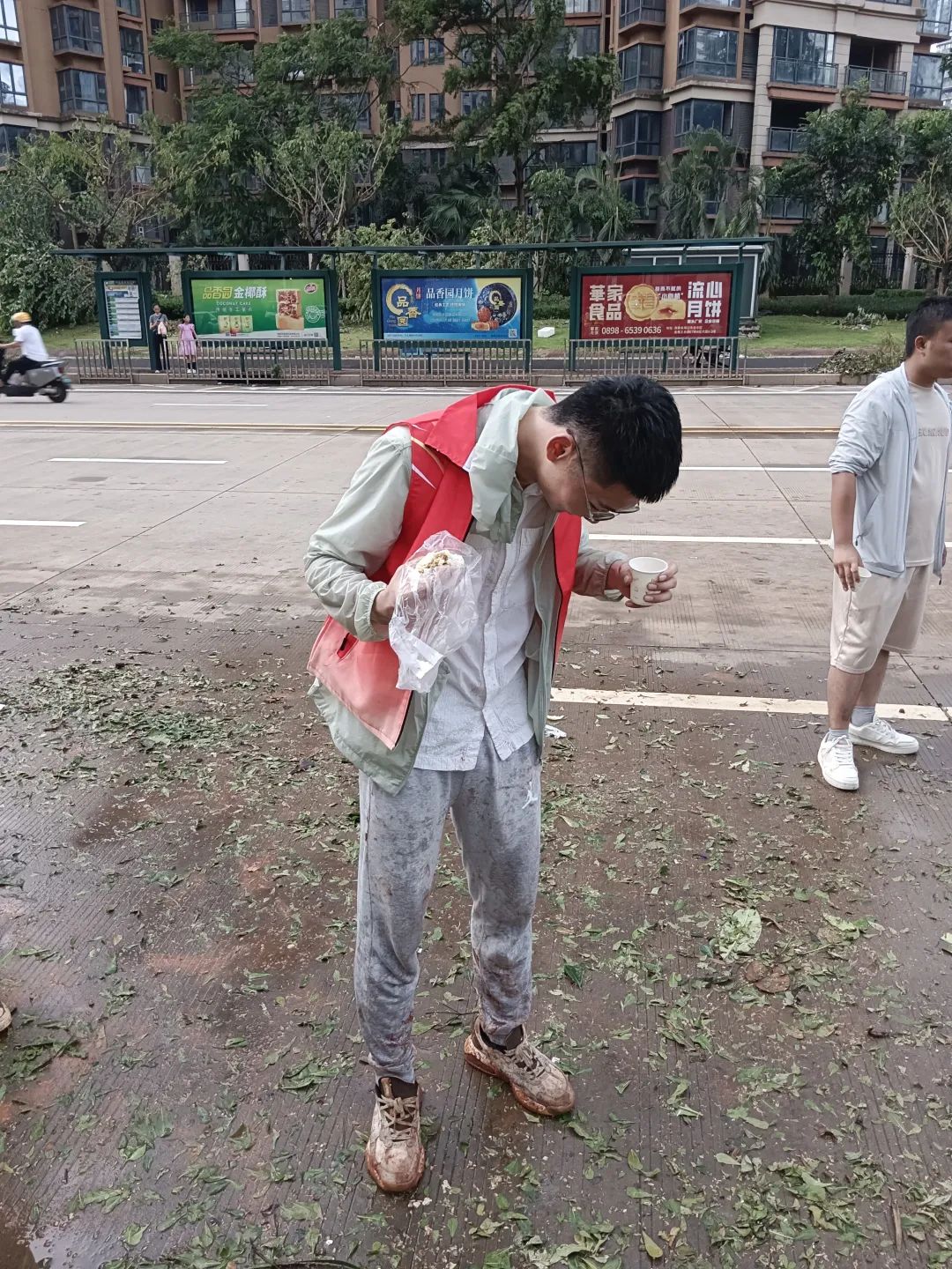 除了对项目进行清理,团队还主动联系当地政府,9月8日,组织成13人的路障清理小组在长滨路二街进行树枝清理,进行了6处路障清理,长达约3公里,极大地缓解了重点路段的交通压力。9月10日,在党员责任区主任的组织下,他们又组成38人小队进行了抢险保通工作,最大程度为地方贡献出自己的力量。工作时,不少路人和沿街店铺的店主都给团队送来了豆浆、茶水、包子等“爱心饭”。“你们辛苦了,休息一下吧。”这一刻,心与心之间的距离因这场台风被无限拉近。忙碌的身影后,是责任和担当。董进成与同事们虽满身疲惫却眼神坚定,不停忙碌地疏通道路,清理台风留下的痕迹。人们的生产生活虽然暂时陷入了困境,但他们内心深处的坚韧与乐观精神,却未曾被熄灭。当问到这几天最难忘的事情时,董进成开玩笑说,“最难忘的事就是废了一双鞋,一条裤子和一件半袖。”