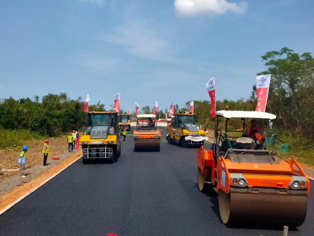 台风“摩羯”过境后,传统节日中秋节来临之前,海南环岛旅游公路环新英湾支线项目十一工区全力以“复”,进入争分夺秒奋力推进复工复产的新阶段。9月15日上午,海南环岛旅游公路环新英湾支线项目AC-20沥青下面层试验段摊铺完成。