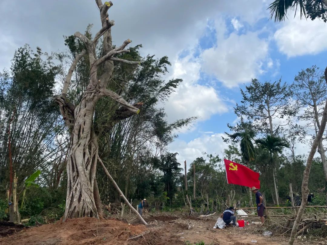 此次扶正行动吸引了众多村民关注,大家纷纷在现场帮忙,共同见证这一激动人心的时刻。“真的太感谢你们了!没有你们这两株古树就救不活了。”武朗村冼书记说,看到这两株古树重新站起来,我心里特别踏实。