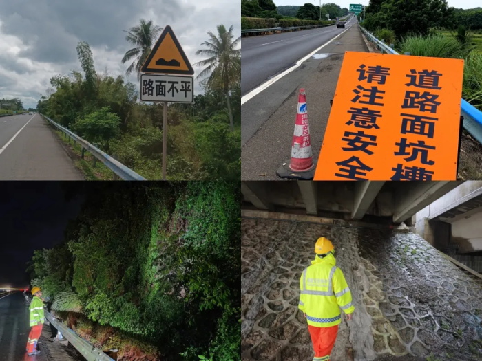 G98环岛高速东线段的坑槽病害主要集中在定安至万宁路段,为保障车辆通行安全,9月19日以来,养护公司定安、琼海、万宁等管理站共安排了近100人次,分组开展涉路巡查和结构物巡检等工作,确保及时发现及时处置,截至目前,共应急修补约580平方米。