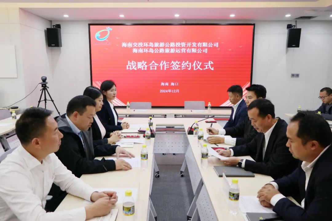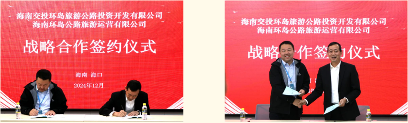 2024年12月31日下午,海南交投重组之际,为促进海南环岛旅游公路交旅融合高质量发展,实现海南交投和海南旅投合作共赢,海南交投环岛旅游公路投资开发有限公司与海南环岛公路旅游运营有限公司,在海口市举行战略合作签约仪式,就海南环岛旅游公路沿线停车区、观景台及养护工区开展合作。海南交投环岛旅游公路投资开发有限公司董事长、总经理吴卓科,海南环岛公路旅游运营有限公司总经理陈军出席。
