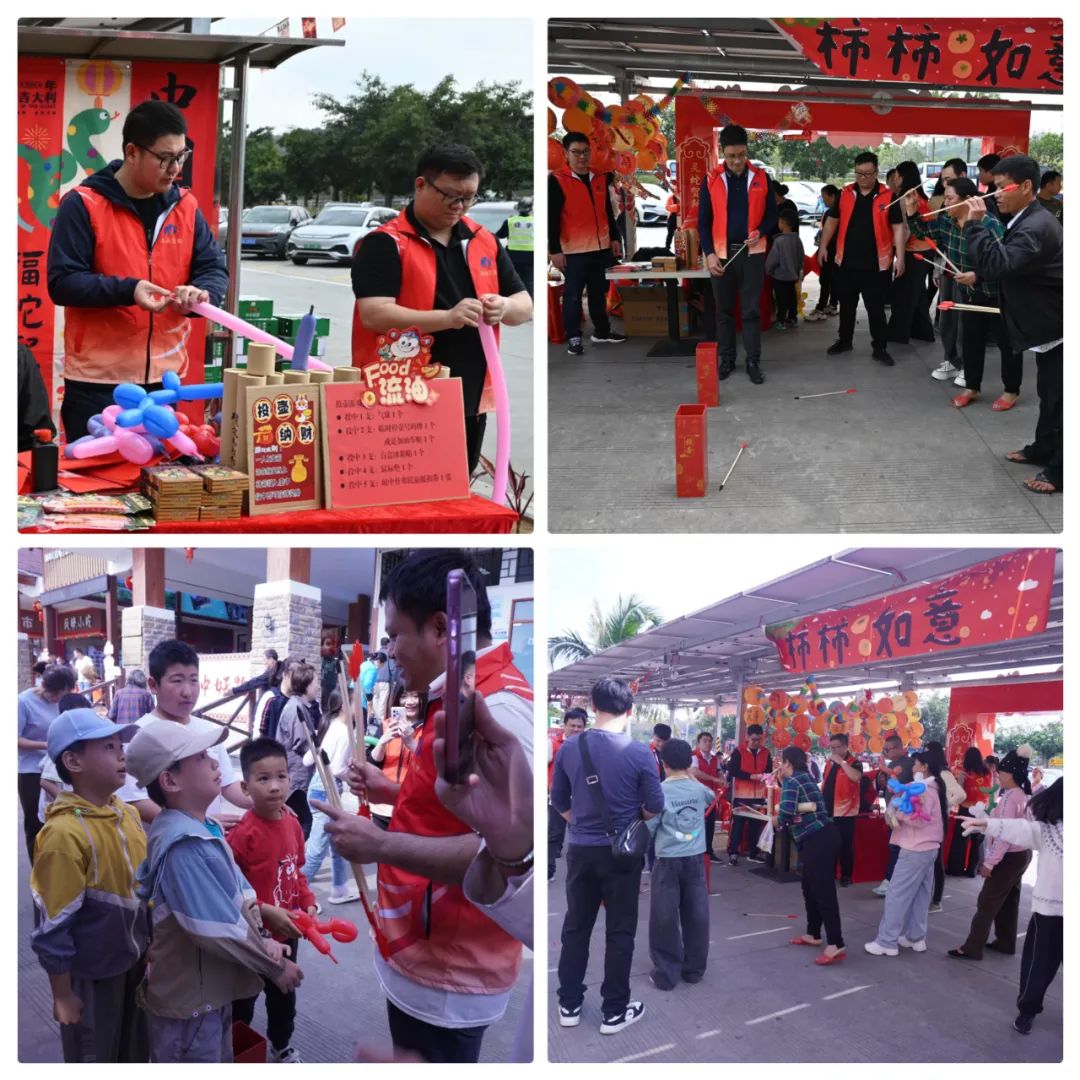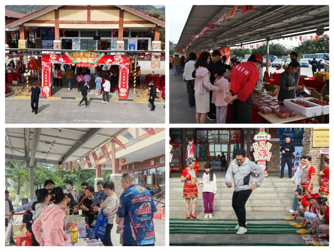 红笼高挂,福字添欢。农货节现场,各类琼中特色农产品摆满展台,展品内容丰富多样,专业黎苗歌舞团载歌载舞,邀请游客互动,欢笑声此起彼伏,处处洋溢着喜庆的新春气息。交商集团党员服务队身穿志愿者马甲,分成3个小组,各司其职,齐心协力,助力年货节顺利开市。