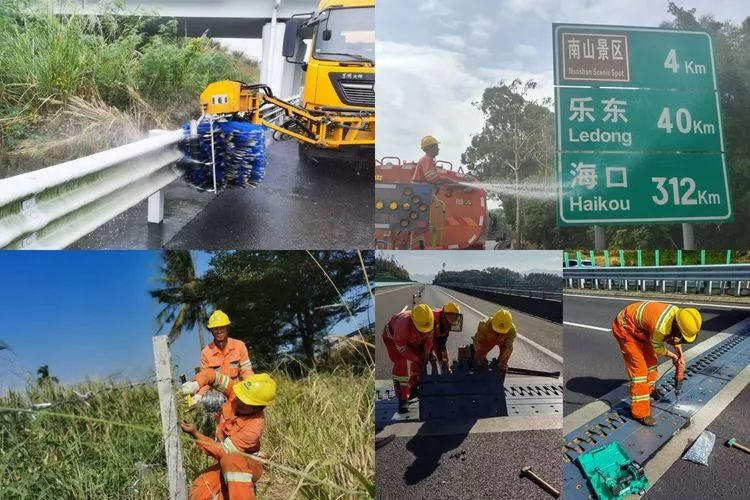 为确保旅游旺季公路的高质量通行,养护公司针对台风损毁的交安设施集中开展修复,采取错峰施工、夜间施工、多项作业合并实施等措施抢抓工期,争分夺秒推进工程进度,最大程度减少对交通的影响,在保证工程进度的同时,为客流让路,目前,各类专项工程已全线暂停施工,并做到“工完料净场地清”。2024年11月至今,已有序开展交通标志精细化提升工程、天涯互通匝道路面修复养护以及三亚周边路段应急处置等项目。