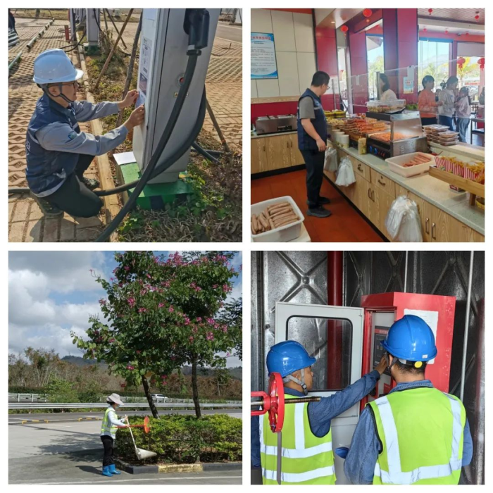 安全是保畅工作的重中之重。为给过往司乘在春节期间提供良好安全的服务环境,公司严格落实安全生产管理制度,按照全面兼顾、重点盯防原则,细化5项安全生产和7项应急保障措施,节前领导班子分头带队开展巡查3次,业务部门开展安全专项检查8次,累计28人次,全面检查和维护各类设施设备,重点排查充电桩、水电设施、照明系统、卫生间设备等,及时修复更换存在故障的设备,确保服务区全部设施设备正常运转。同时抓好食品安全管控,细化现场用餐管理,全力保障商品供应品质。此外,针对节日期间大幅增长的充电需求,增加现场服务人员,客服团队保持24小时在线,及时解决用户在充电过程中遇到的各类问题,并运用智能管理平台实时监测调度,引导用户前往空闲充电桩充电,有效减少等待时间,确保充电服务安全高效便捷。春节期间充电场站累计充电量42.68万度。