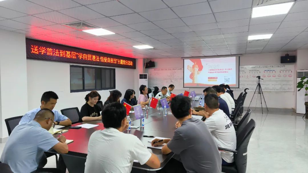 本次活动邀请海南长同律师事务所郑抒婷律师进行授课。课上,郑抒婷律师从立法的重要意义、立法的主要考虑、核心内容解读等六个方面,结合违反自贸港法的典型案例,进行了系统阐释和深度解读,引导全体人员深刻领会自贸港法的核心内涵、实质要义。