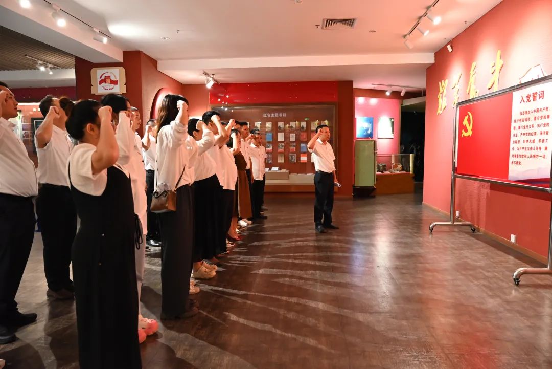 “我志愿加入中国共产党……随时准备为党和人民牺牲一切,永不叛党!”洪亮坚定的誓言在博物馆久久回荡,字字千钧、句句赤诚。面对党旗,全体党员高举右拳庄严宣誓,既是对入党初心的回溯,更是对共产主义事业奋斗终身的庄严承诺,彰显着对党的无限忠诚与热爱。