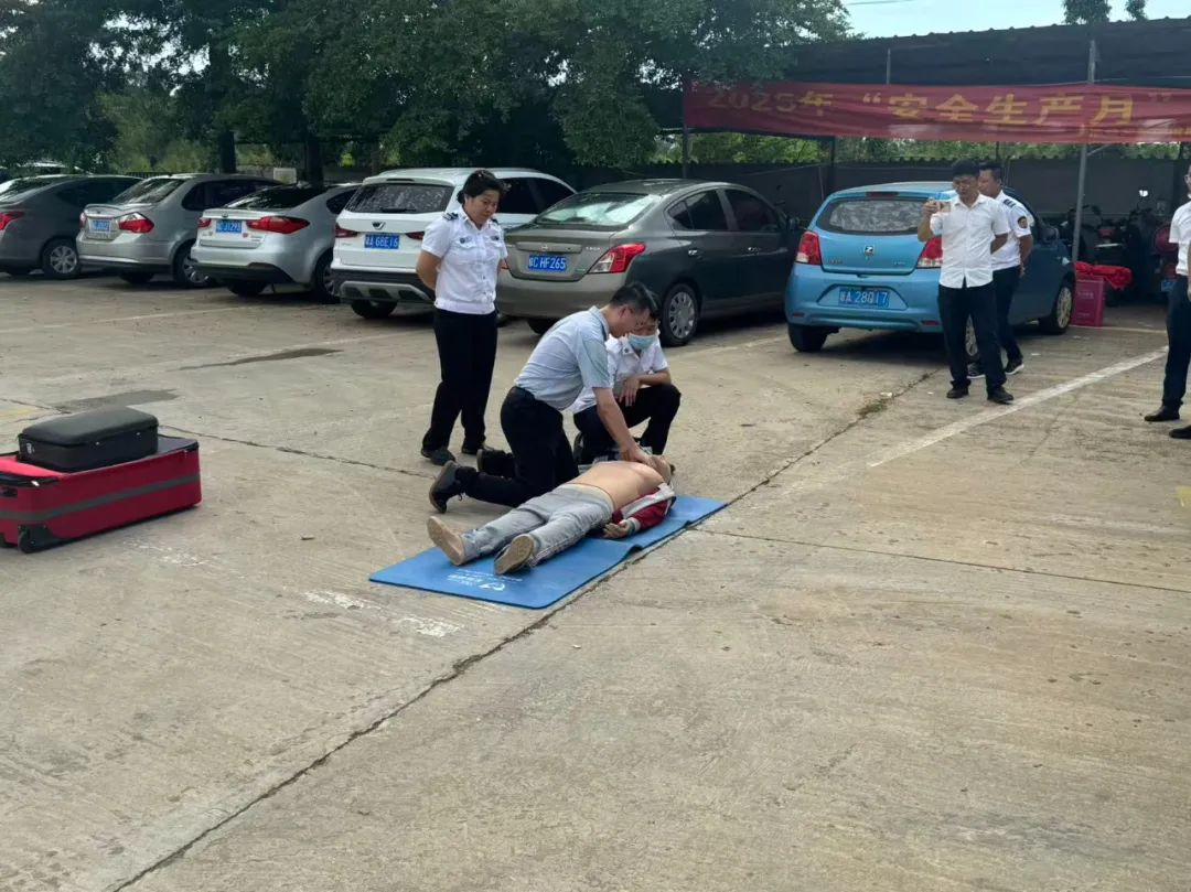 除了清凉物资关怀,“清凉一夏之应急培训”环节则聚焦职工安全与乘客出行保障。活动特别邀请临高县人民医院医务科专业人员,为临高公交一线职工及管理人员开展了一场实用的应急技能培训。培训中,医护人员通过生动的案例分析、细致的技能演示,重点讲解并现场指导了心肺复苏、AED 设备使用、癫痫发作应急处理、心搏骤停与心肌梗死急救、止血包扎等关键技能。参训职工们认真学习、积极互动,纷纷上前实操演练,力求熟练掌握每一个操作细节。