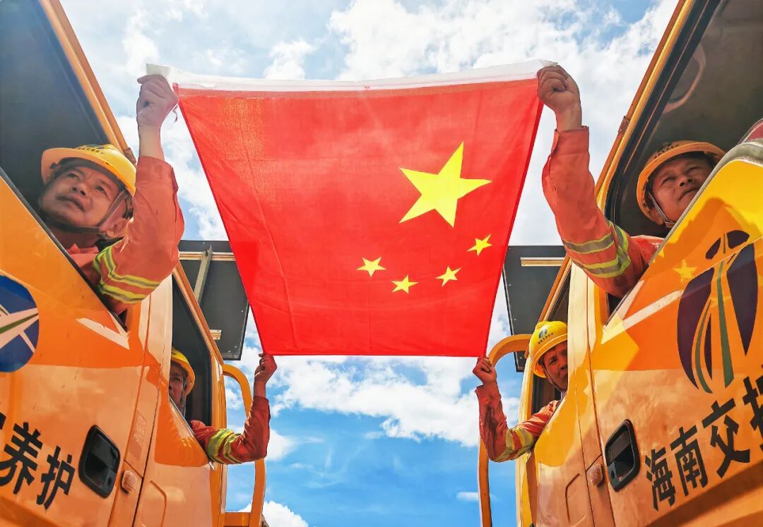 清澈的爱,只为中国。在中华人民共和国成立76周年之际,海南交投组织开展“我在一线与国旗同框”主题海报征集活动,广大干部职工坚守岗位,扎根一线,以奋斗为笔,以汗水为墨,站在鲜艳的五星红旗下,共同抒发对祖国母亲的深切热爱与美好祝福!