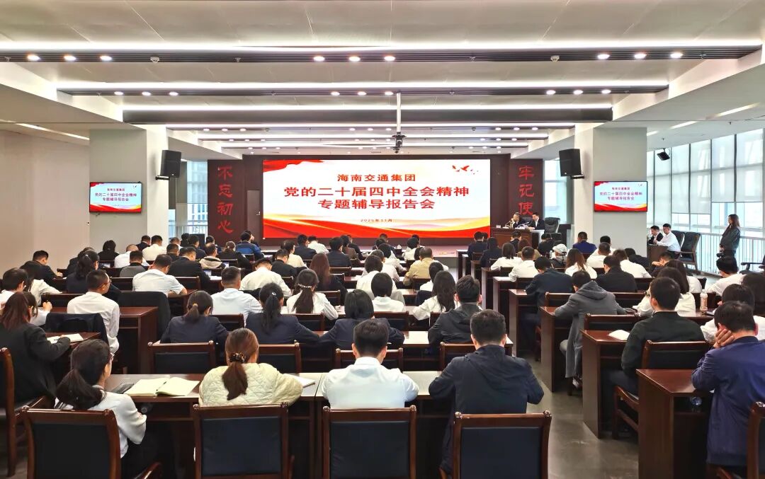 为全面学习贯彻党的二十届四中全会精神和习近平总书记在听取海南自由贸易港建设工作汇报时的重要讲话精神,引导集团全体干部职工把思想和行动统一到党中央决策部署和省委、省政府工作要求上来,11月26日上午,海南交通集团举办党委理论学习中心组(扩大)学习会议暨党的二十届四中全会精神专题辅导报告会。集团党委书记、董事长陈泰锋主持会议并讲话,党委领导班子成员,各事业部、下属二级单位领导班子成员,首批“启明星”计划学员以及全体干部职工约900人通过“线上+线下”相结合的方式参会。