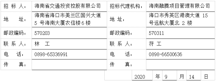 5.2 投标保证金到账截止日期:2020年10月10日08时30分 ,投标保证金的形式:网上支付或线下银行转账支付、银行保函支付,支付地址:http://zw.hainan.gov.cn/ggzy/。第1标段投标保证金的金额为:10000元;第2标段投标保证金的金额为:10000元。采用银行保函时,应由投标人开立基本账户的银行出具保函,与银行查询授权书原件一并在投标截止时间前交招标人。