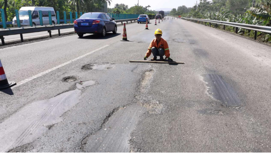 陈华高认为,东线高速万宁段的路面病害问题,主要原因是使用年限久、路面材料老化导致,彻底解决该问题需要进行系统性的大修。目前万宁养护站已经将该路段的病害问题向上级部门报告,上级部门也正在研究计划中。