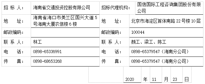 海南省环岛旅游公路工程股权投资+施工总承包招标 补遗书(第1号)