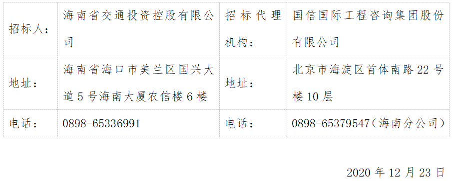 中标人:中交第四公路工程局有限公司;中交一公局集团有限公司;中交海洋投资控股有限公司;中交第二公路工程局有限公司;中国公路工程咨询集团有限公司;中铁二局集团有限公司;中铁八局集团有限公司;中铁北京工程局集团有限公司;中铁海南投资建设有限公司;