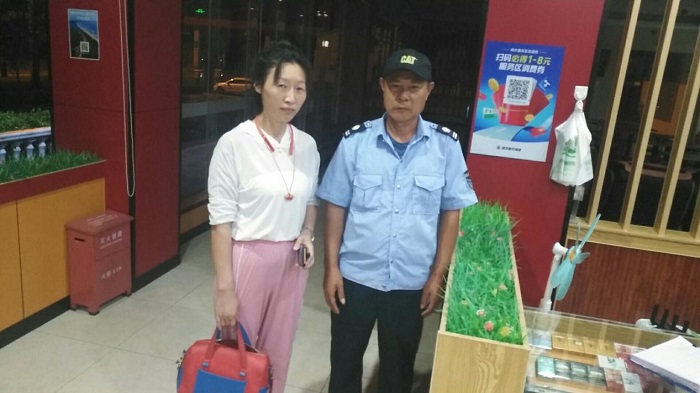 直至当天凌晨一点,失主返回枫木服务区认领手提包,经管理人员反复核实情况后,将失物归还给失主,失主对保安人员陈君丰表示感激之情,并提出予以现金谢酬,然而被他婉言谢绝。